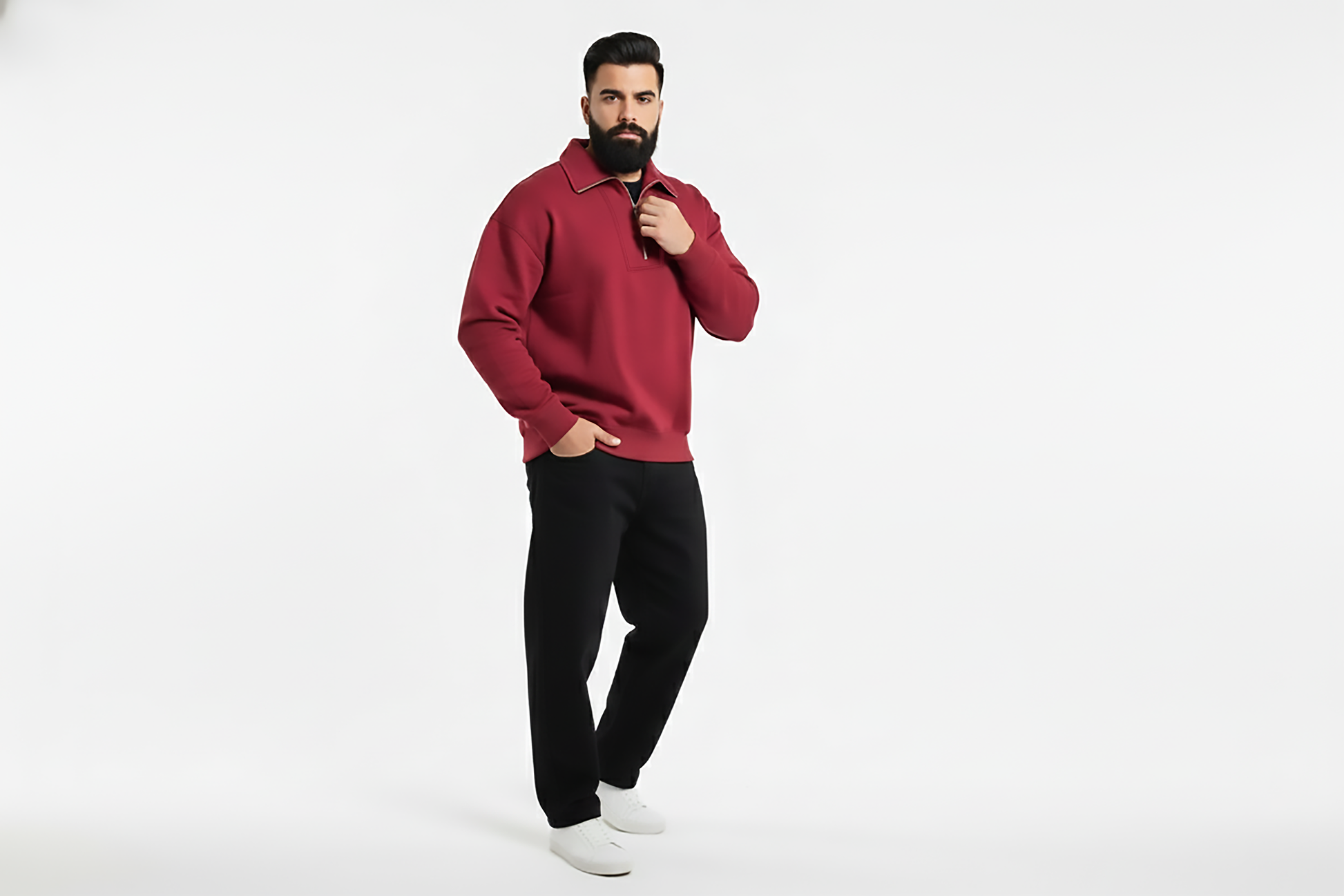 Textured Zip-Neck Knit Jumper – Royal Maroon